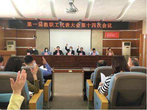 3月10日下午,在教学楼AT21会议室召开了我校第一届教职工代表大会第十四次会议,审议我校职称评审制度(2021年修订•审议稿)和奖励性绩效工资实施暂行办法(审议稿)。学校领导班子成员及教职工代表参加了会议。会议由学校党委副书记姚玉平主持。