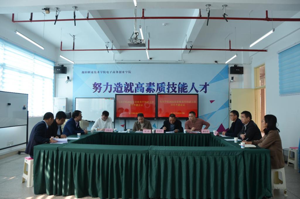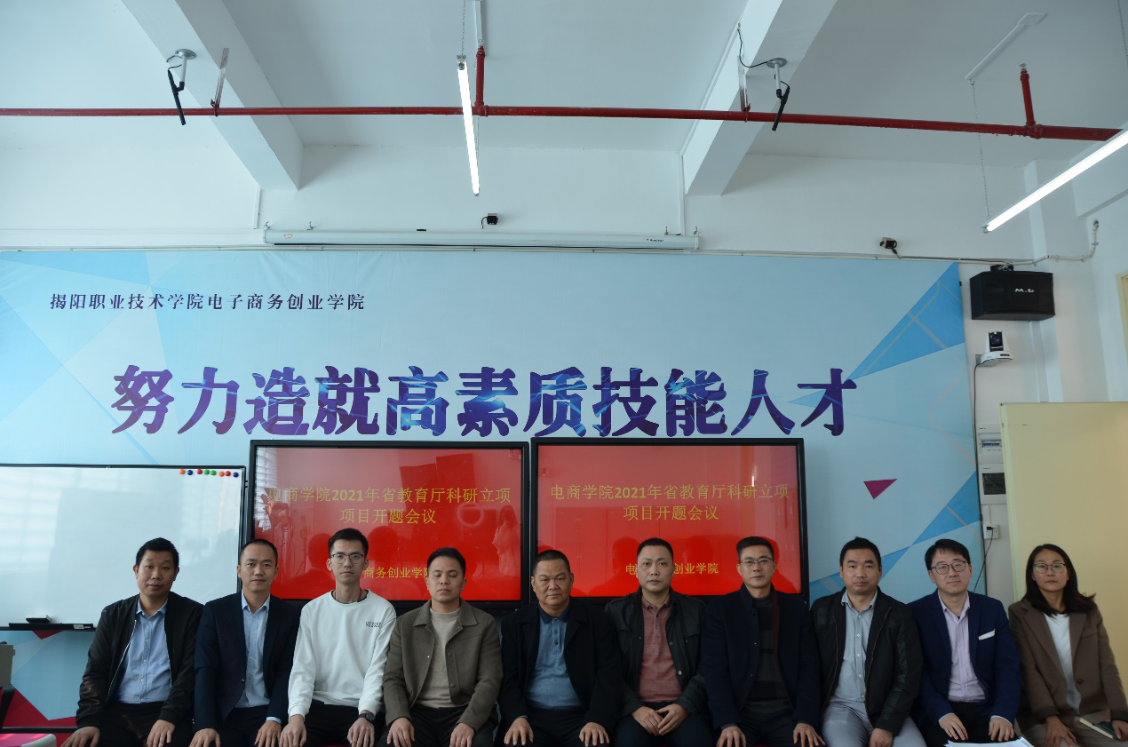 近日,电商学院获得省教育厅立项的两个课题,省教育厅2021科研立项之科技服务乡村振兴重点领域项目:《高职院校电商专业服务乡村振兴人才支撑体系建设策略研究——以揭阳职业技术学院为例》(主持人:陈志钦)和省教育厅2021科研立项之青年创新人才项目(认定类):《全过程视角下高职院校电子商务创新创业人才评价体系研究》(主持人:林宇)在教研楼709室分别举行开题报告会。课题开题特邀评议专家、课题组核心成员等参加会议。电商学院党总支书记兼副院长张秋潮主持开题报告会并致欢迎词,学校科技设备处杨培新处长宣读省厅课题立项文件并对电商学院取得立项表示祝贺。