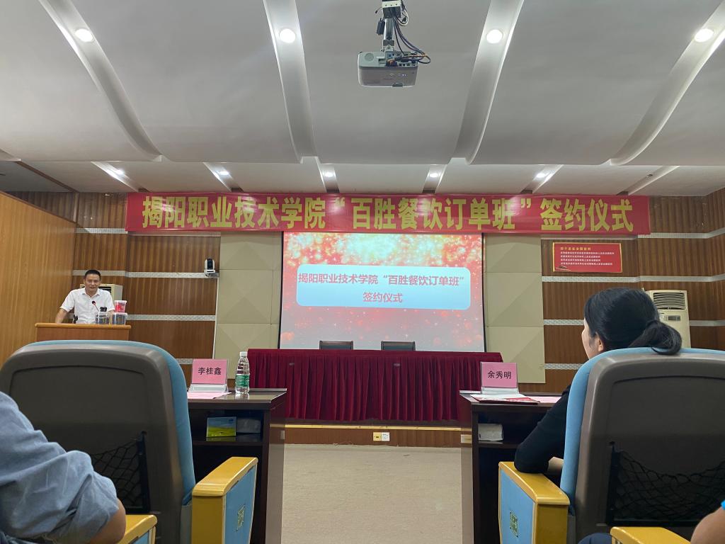 为进一步深化校企合作,落实校企协作育人,10月21日下午,我校与汕头肯德基有限公司的“百胜餐饮订单班”签约仪式在教学楼AT21隆重举行。会议由林汉顺主任主持。