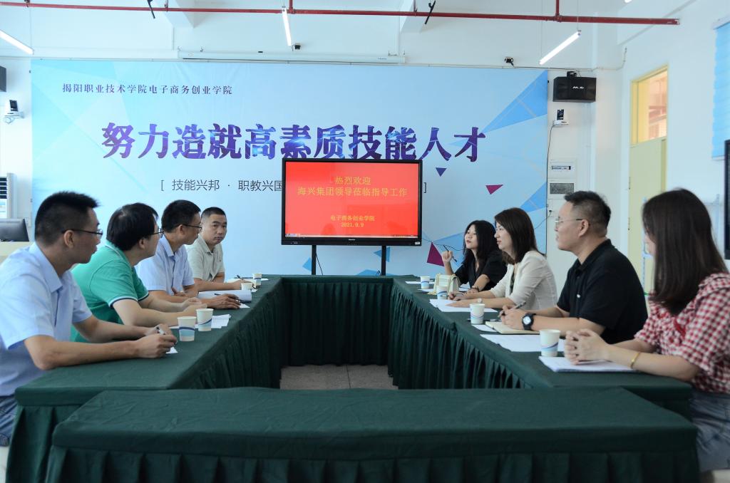 9月9日,广东海兴控股集团海兴之家总经理李桂珊、盘锦海兴电商副总经理何程丽等一行到我校开展校企合作交流,受到学校领导的热情接待。
