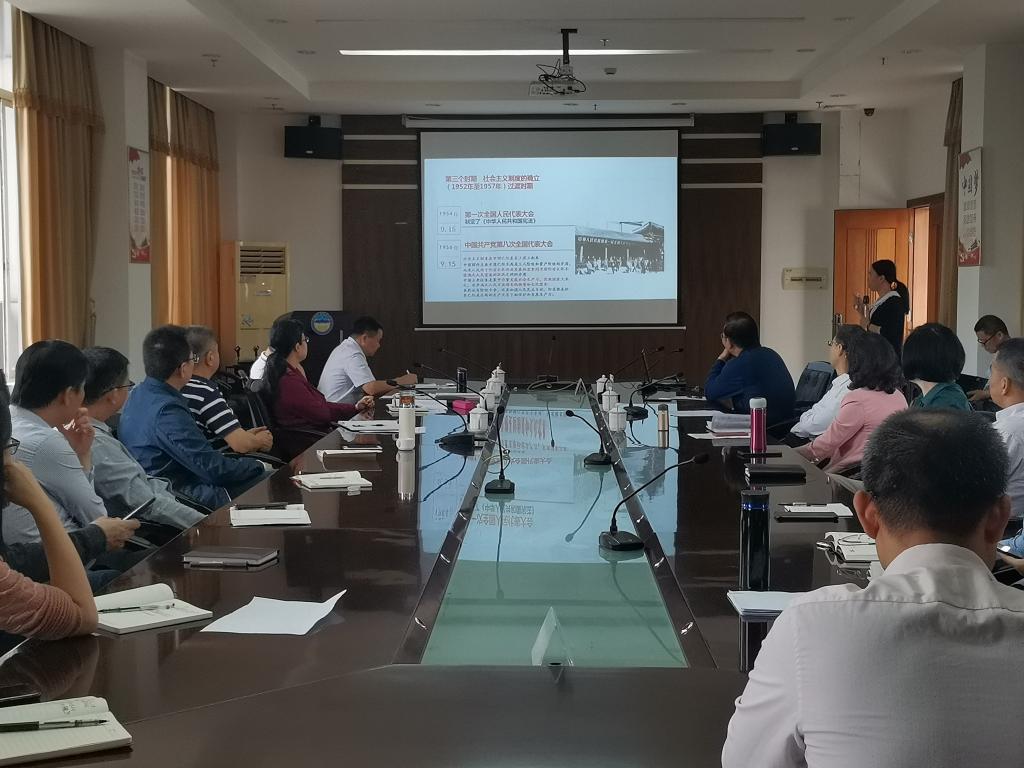 4月29日上午,为进一步推动我校党史学习教育,我校党委理论学习中心组举办专题学习会,由学校宣讲团成员陈淑庄副教授作题为《新中国社会主义建设探索的经验与启示》的专题报告。报告会由党委副书记姚玉平主持。