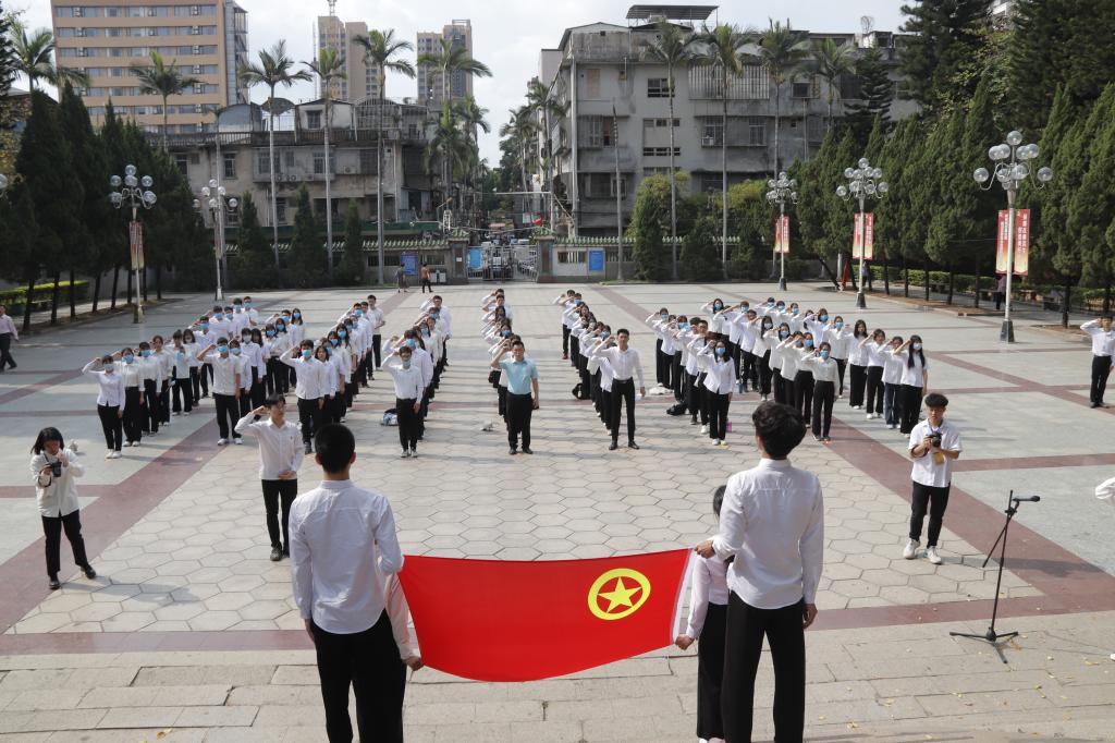 青年团员代表张灿鸿号召同学们要铭记历史,担起责任,要学好专业知识,增强自身本领,为建设社会主义现代化国家新胜利而努力。
