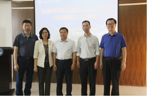 张华副主任以《省高职创强工程(2019—2021年)考核解读与工作建议》为题,结合高职教育发展趋势,围绕“实施创强工程建设的重要意义”“创强工程考核指标的政策依据”“创强工程考核指标组成”“揭阳职院2020年度创强工程考核失分原因分析”“做好揭阳职院2021年度创强工程考核的建议”“做好揭阳职院创强工程建设的建议”六个方面做了精彩的报告。他指出,落实省高职创强工程具有重要的意义,有助于提升高职院校自身的发展水平和办学实力、服务高职院校的绩效考核、事关高职院校自身办学品牌打造与声誉。同时,他对于我校如何做好2021年度“创强工程”工作提出了宝贵的意见和建议。