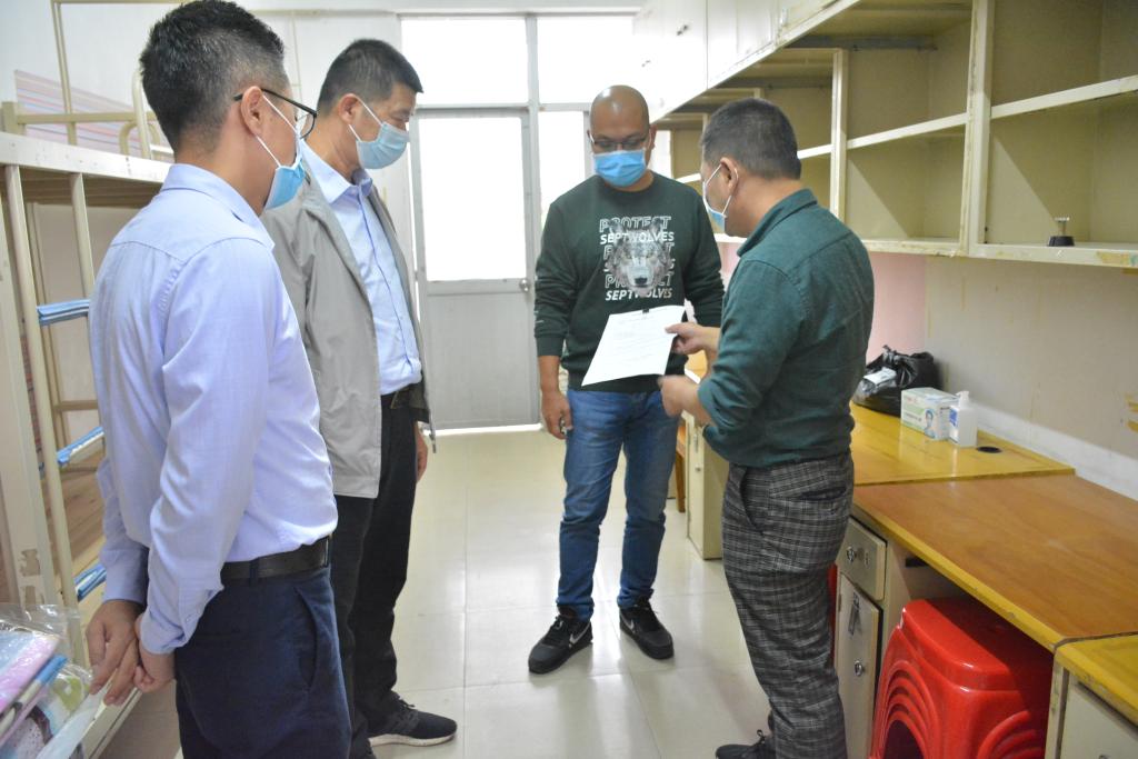 为贯彻落实全市秋冬校园疫情防控暨学校安全工作,切实做好我校疫情常态化防控工作,保证师生身体健康安全和各项服务保障工作有序开展,12月1日下午,学校党政办主任邢南亮带领学校防疫领导小组成员到学校各场所开展安全检查工作并指导疫情防控工作,就疫情防控、物资储备、食品安全等工作进行全面检查,详细了解各场所的疫情防控、安全生产等情况,对发现的问题和隐患提出整改要求和意见,并及时整改,以确保安全。