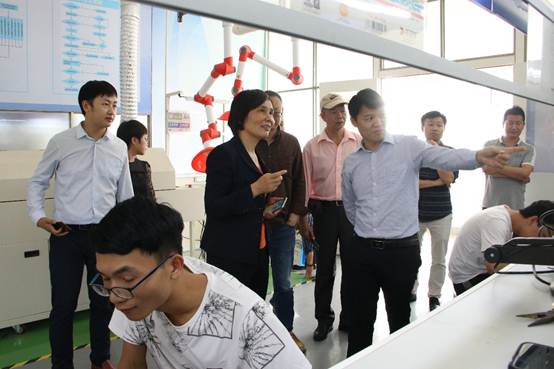 李镇伟主任介绍我校实验实训、产学研合作、职业技能大赛以及“1+X”证书等方面工作情况。随后,宾主双方围绕实验实训建设与管理、产学研一体化基地建设管理等内容进行了深入的交流与探讨。蔡幼君主任一行还参观了我校模具设计与制造、电子与物联网实训基地。
