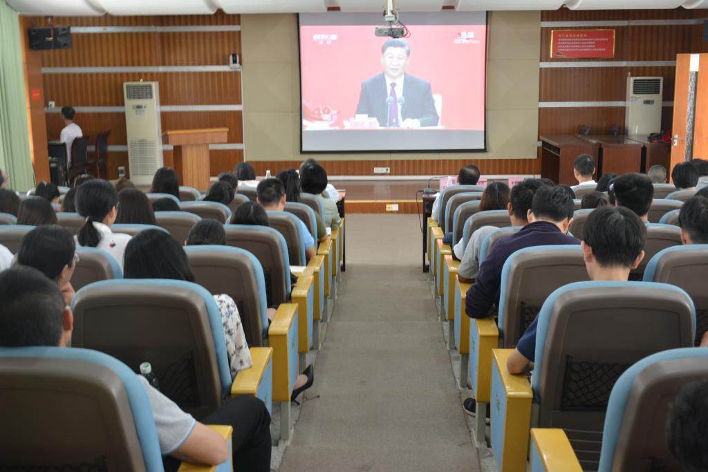 学院党政领导和师生党员代表集中收看大会盛况