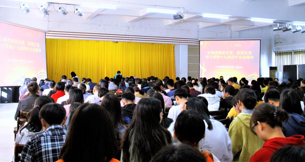 张副校长的报告围绕“充分认识坚持和完善中国特色社会主义制度、推进国家治理体系和治理能力现代化的重大意义”“深刻领会中国特色社会主义制度和国家治理体系的显著优势,坚定中国特色社会主义制度自信”“准确把握坚持和完善中国特色社会主义制度、推进国家治理体系和治理能力现代化的总体要求、总体目标和重点任务”“加强党的领导,确保全会确定的各项目标任务全面落实到位”四个方面进行了精辟的解读。她指出,十九届四中全会通过的《中共中央关于坚持和完善中国特色社会主义制度、推进国家治理体系和治理能力现代化若干重大问题的决定》,系统总结了我国国家制度和国家治理体系的显著优势,全面部署了推进制度建设的重大任务和举措,是一份纲领性文献,必将对推动各方面制度更加成熟更加定型、把我国制度优势更好转化为国家治理效能产生重大而深远的影响。十九届四中全会是一次具有开创性、里程碑意义的重要会议,我们要把全会精神学习好贯彻好。她强调,学习贯彻十九届四中全会精神就是把思想和行动统一到全会精神上来,一要从根本保证上学习领会把握,二要从重大意义上学习领会把握,三要从指导思想上学习领会把握,四要从制度自信上学习领会把握,五要从目标任务上学习领会把握。张副校长的精彩报告既有深入浅出的理论阐述,又有条理清晰的实时分析,更有实践层面的对策思考,引起在场师生的强烈共鸣。张副校长同时传达省委第十二届八次全会精神。