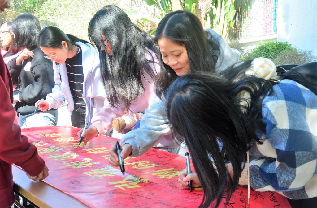 宣传统战部与学生工作处也组织开展宪法知识进校园系列活动。宣传活动周期间,校广播站持续播读宪法知识,让学校全体学生了解宪法内容;12月4日,“弘扬宪法精神,做时代有为青年”主题签名活动在校道举行,学生热情参与,在横幅上写下自己的名字,许下庄严的承诺。12月5日,开展“学宪法、尊宪法”灯谜会猜活动,将法治元素融入传统灯谜艺术,趣味学法,在学生群体中引起了强烈的反响。同时,“宪法知识竞赛”在教学楼AT21教室举行,来自学校各教学部门的学生代表120多人参加活动,竞赛分为单选题、多选题和判断题,内容围绕《中华人民共和国宪法》相关知识展开,让学生深入了解宪法知识、切实增强法治意识,激发学生学法、懂法、用法的热情。