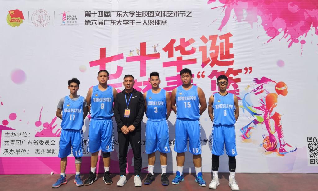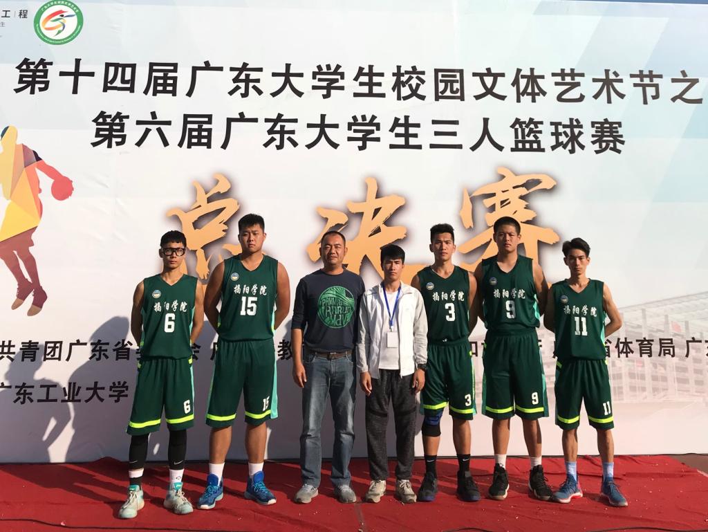 由共青团广东省委员会、广东省教育厅、广东省体育局等主办,广东工业大学协办的第十四届广东大学生校园文体艺术节之第六届广东大学生三人赛在广东工业大学(龙洞校区)大操场篮球场举行。我校代表队参与了此次比赛。在队员们的共同努力下,经过淘汰赛、半决赛和季军赛,我校代表队取得了第六届广东省大学生三人篮球赛八强(一等奖)的佳绩。
