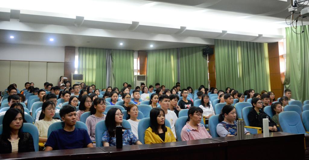 报告中,汤老师以“中国共产党取得政权的时代背景”为切入点,阐述了中国共产党为什么“能”的历史原因,他认为中国共产党能带领中国人民取得巨大成功绝非偶然,而是因为她有一系列优秀特质。中国共产党有远大理想追求,有科学理论引领,有选贤任能机制,有严明纪律规矩,有自我革命精神,有强大领导能力。报告从“中国共产党的初心和使命”“践行‘五个过硬’展现新时代党员干部新作为”“新时代如何做爱国者”等三方面内容进行了论述。汤老师指出,新中国70年是一部感天动地的奋斗史诗,也是中国青年用青春之我创造青春之中国、青春之民族,永不停息奋力拼搏的壮丽史诗。作为新时代中国青年,我们要高举旗帜,坚守马克思主义信仰的“恒心”,不忘初心,坚持党领导一切的忠心,全心全意为人民服务的赤子之心。我们要牢记使命,砥砺前行,实现中华民族伟大复兴的雄心和中华民族伟大复兴的信心。他强调,爱国主义是中华民族精神的核心,中国特色社会主义进入新时代,必须大力弘扬爱国主义精神,我们要爱祖国大好河山,爱自己的骨肉同胞,爱祖国的灿烂文化,爱社会主义制度。