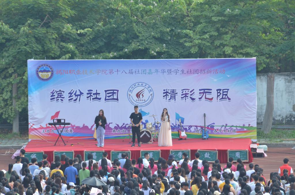 一首充满青春气息的《我还年轻我还年轻》开启了接下来的社团表演,口才协会带来了《自由之路》,表达了同学们对自由的向往;《舞动青春》唱响了青春的旋律……一个个精彩的演出深入人心,赢得了台下同学们的欢呼喝彩。招新现场人山人海,同学们热情似火,纷纷加入自己钟情的社团,而各大社团纷纷结合自身特色,来吸引新生报名:沧海舞堂以舞会友,每一段精彩的表演都吸引了同学们的眼球;旋风吉他协会,让音乐走进同学们的内心,以乐器辅以旋律,为本次活动开展增添了趣味性;青年志愿者协会,以服务为主,同样也激起了同学们的热情;武术协会,强身健体,运动爱好者们纷纷加入……