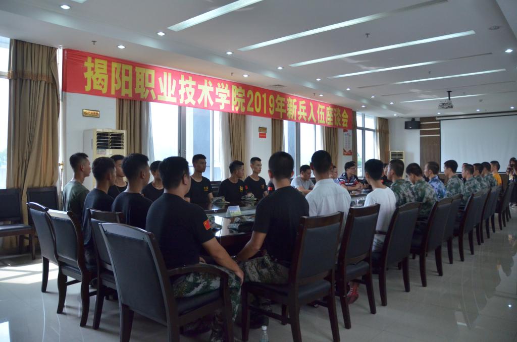 入伍前,我校举行了在校大学生入伍欢送会,为入伍的同学送上祝福,勉励他们在祖国的千里边防、万里海疆留下揭职院学子的足迹,用青春谱写人生的壮丽篇章。随着最后一批应征入伍大学生踏上前往部队的征程,我校2019年大学生征兵工作圆满结束。