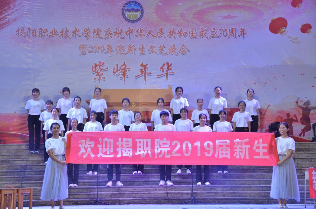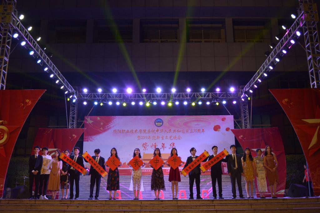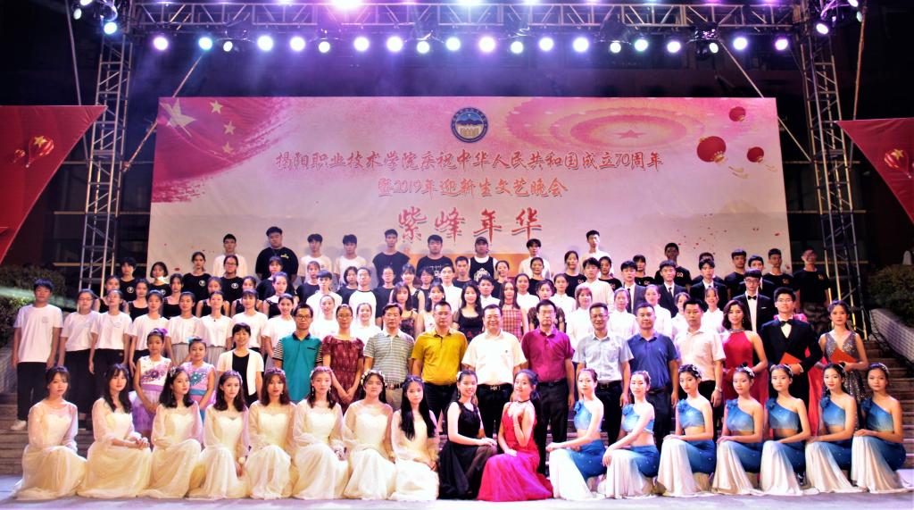 壮丽辉煌70载,梦想起航在今朝。9月27日晚,我校在行政楼广场前隆重举办庆祝中华人民共和国成立70周年暨2019年“紫峰年华”迎新生文艺晚会。我校党委书记李文升,党委副书记兼纪委书记姚玉平,中国电信揭阳分公司副总经理谢晓新,中国电信揭阳市校中心总经理陈少彬,中国电信揭阳城区分公司副总经理陈尚辉,以及学生工作处(团委)负责人、各系部党总支书记,2019级新生共2000余人参加本次晚会。