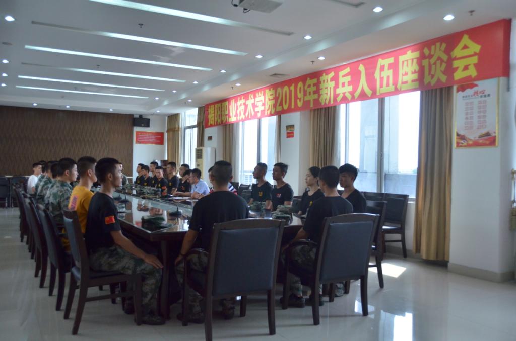 为营造大学生携笔从戎、报效祖国的良好氛围,9月9日上午,我校在行政楼507会议室召开征兵入伍座谈会。学生工作处处长、校团委书记王烁生,学生处综合科科长陈炳亮,杨松老师以及我校2019年在学校应征入伍7名同学,以及退役复学的学生共50多人参加此次座谈。座谈会由陈炳亮科长主持。