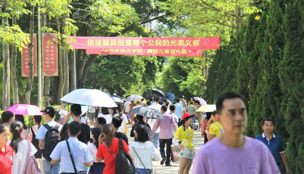 朝阳广场奏响着校歌《青春之旅》,志愿者、新生和家长们的欢声笑语汇成迎新的欢乐乐章。