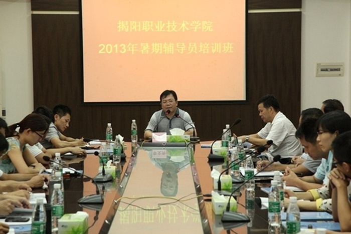 8月19日到23日,我院党校、学生处联合举办2013年暑期辅导员校本培训班。培训内容包括:党的群众路线教育与学生工作、揭阳职业技术学院辅导员队伍建设实施细则、新修订的学生管理规章制度等,涵盖队伍建设、学生安全教育、就业指导、奖助学、心理健康、团学工作等专题。培训方式主要有集中学习、分组讨论、自学等。学生处工作人员,辅导员老师共40多人参加了学习。
