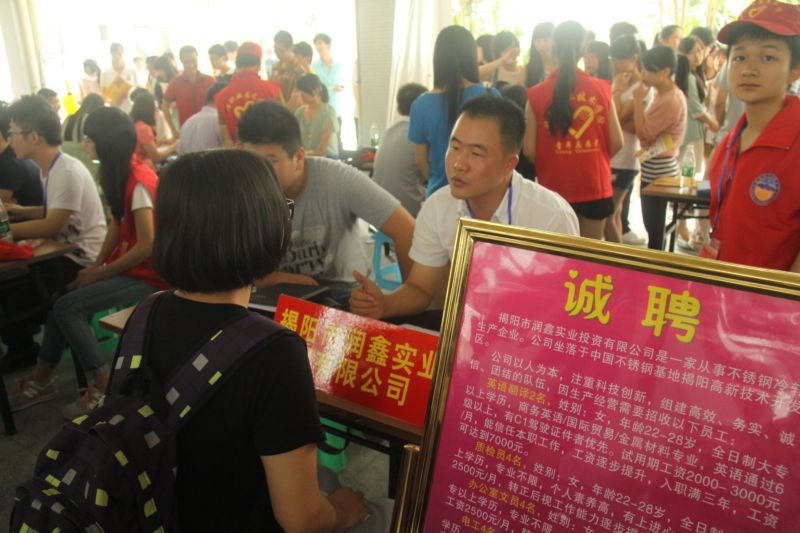 6月7日上午,由我院与揭阳市人力资源和社会保障局在我院联合举办“揭阳职业技术学院2013年毕业生就业招聘会(六月份专场)。共有37家用人单位到场招聘,金山实验学校、广东泰通科技股份有限公司等单位共提供1100多个就业岗位。现场达成就业意向有570多人。