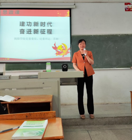 砥砺前行开新局,奋楫扬帆再出发。为进一步深入学习贯彻党的十九届六中全会精神,引导全校师生把思想和行动统一到全会精神上来,按照教育部、省教育厅有关要求,5月10日上午,学校党委委员、纪委书记苏娴以《建功新时代,奋进新征程》为题在教学楼C505教室为2021级商务英语专业学生上了一堂深刻而生动的思政课。