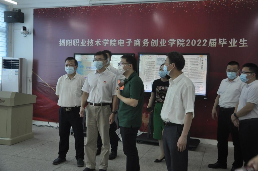 6月23日下午,揭阳市政府副市长罗毅同志带领市卫生健康局局长徐锦泉、市教育局副局长杨丹华及榕城区相关领导同志等莅临我校调研校园疫情防控和毕业生就业等工作。校领导李文升、姚玉平、李桂鑫、刘瑞叶及学校相关部门负责同志陪同调研并座谈交流。
