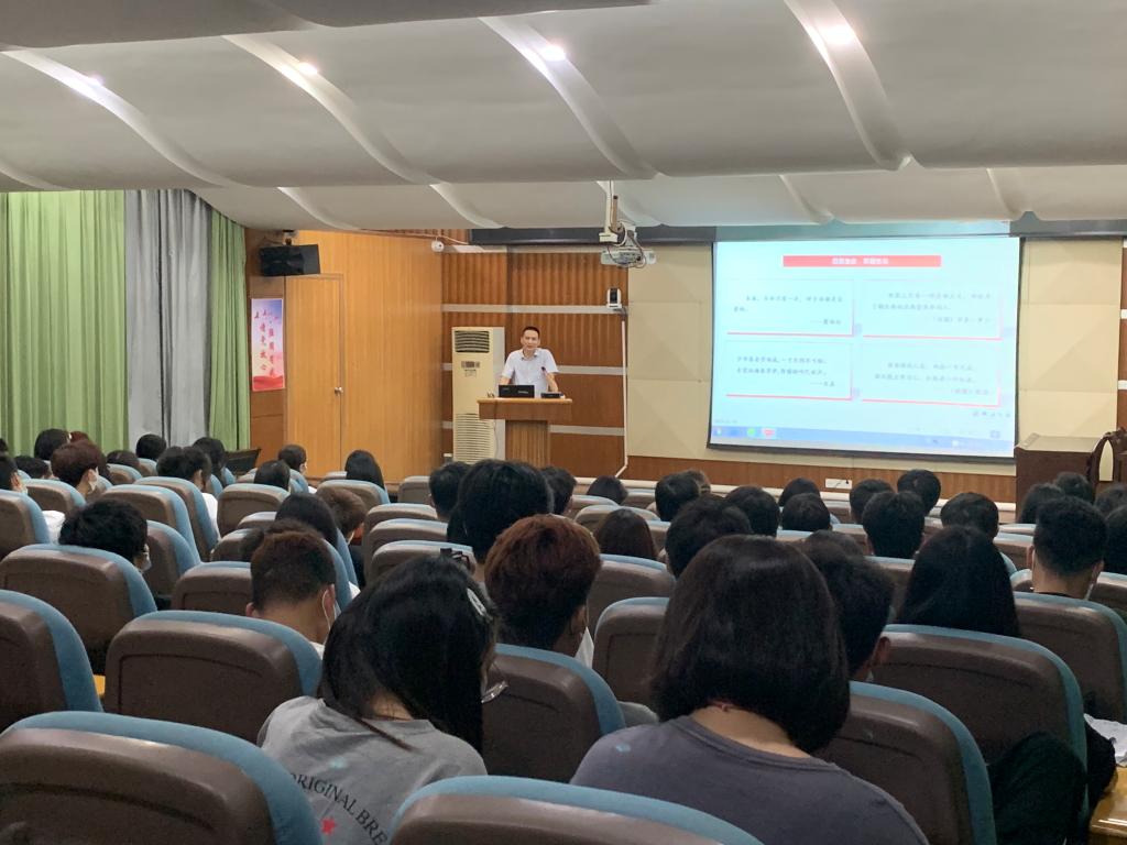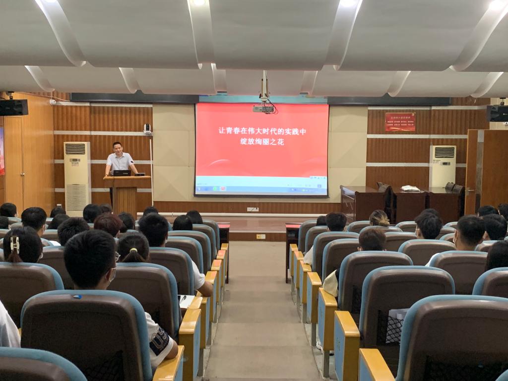 11月21日晚,学院党委委员、副院长李桂鑫在AT21教室为外语系、机电系学生代表上了一堂题为《让青春在伟大时代的实践中绽放绚丽之花》的思政课,外语系、机电系入党积极分子和主要学生干部参加了此次思政课学习。