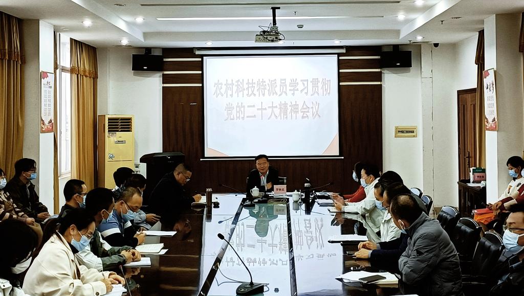 为进一步提高我校农村科技特派员思想认识和综合服务能力,12月1 日下午,学校在行政楼507会议室召开科技特派员深入学习贯彻党的二十大精神会议。参加会议的有罗恢远院长、刘瑞叶副院长和科技与设备处负责人及全校科技特派员。会议由副院长刘瑞叶主持。