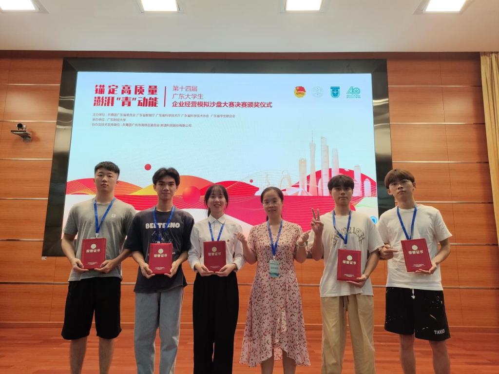 近日,由团省委、省教育厅、省科技厅、省科技协会、省学联联合主办的第十四届广东大学生企业经营模拟沙盘大赛决赛圆满结束。我校选派黄洁如等5名同学组成学校代表队参加此次比赛。