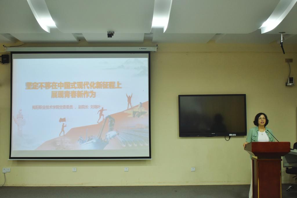 为深入学习贯彻党的二十大精神,落实立德树人根本任务,6月29日下午,学校党委委员、副院长刘瑞叶在慈云教学楼AT22为广大师生讲授了一堂题为《坚定不移在中国式现代化新征程上展现青春新作为》的思想政治理论课。信息工程系、化学工程系教师代表和学生代表近90名师生共同聆听。