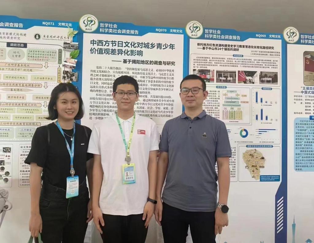 经济管理系赖仁贵学生团队报送作品《中西方节日文化对城乡青少年价值观差异化影响的调查和研究》(指导老师:张利雄、郑苑婷)在参加第十七届“挑战杯”广东大学生课外学术科技作品竞赛获特等奖的基础上,经团省委推荐参加第十八届“振兴杯”全国青年职业技能大赛学生组创新创效竞赛获得优胜奖。