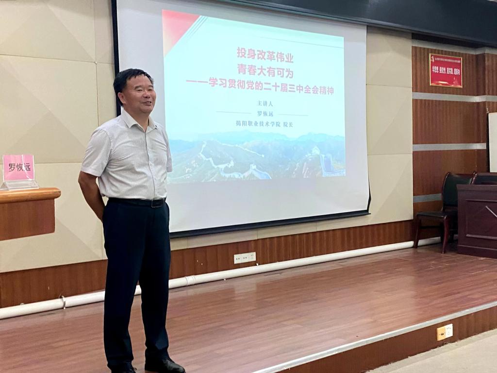 罗恢远聚焦党的二十届三中全会精神,从党的二十届三中全会的历史背景、基本精神和重要意义,对全会精神进行了系统宣讲和深入阐释,结合实际,全面讲述党和国家统筹推进教育科技人才体制机制一体改革,教育引导学生在深化改革必由之路上绽放青春光芒。他表示,党的二十届三中全会是党的十八届三中全会以来全面深化改革的实践续篇,也是新征程推进中国式现代化的时代新篇,具有承前启后、继往开来的里程碑意义。