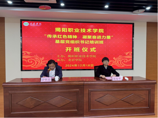 为进一步提升党组织书记的党性修养,12月18日至12月20日,我校在龙岩学院举办揭阳职业技术学院“传承红色精神 凝聚奋进力量”基层党组织书记培训班,学校各基层党组织书记等33人参加培训。学校党委副书记、院长罗恢远出席开班仪式并作动员讲话。