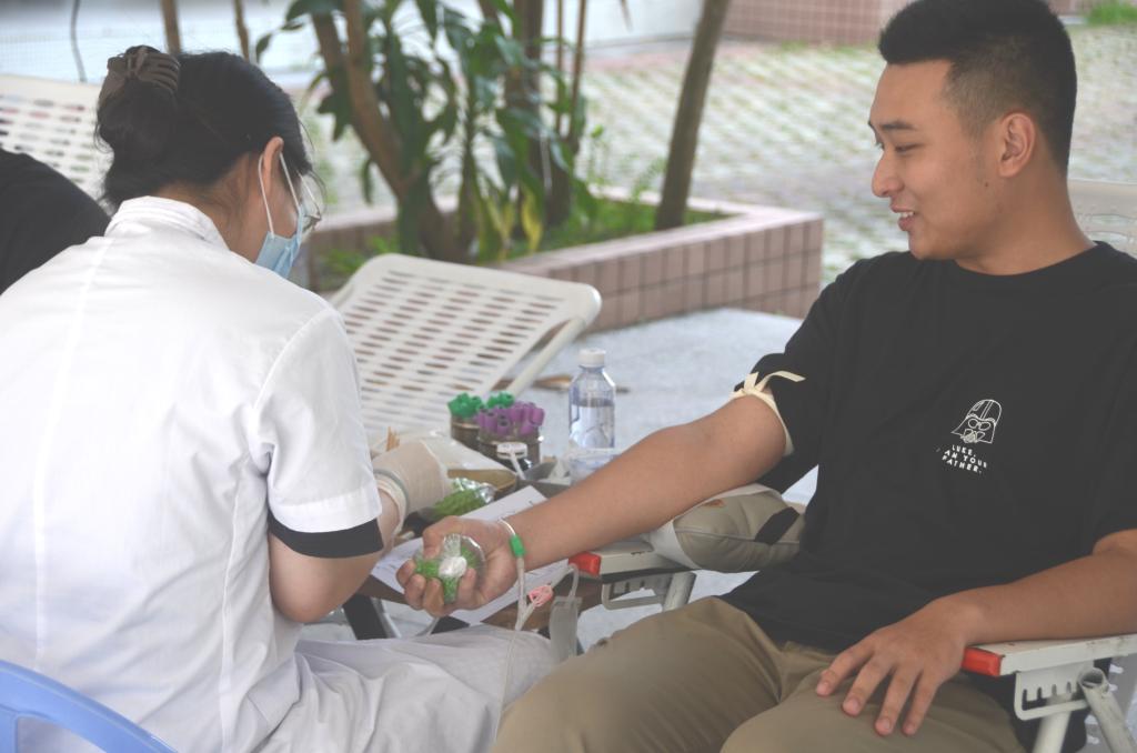 10月30日下午,学校与揭阳市中心血站在宿舍A栋楼下联合开展无偿献血活动。