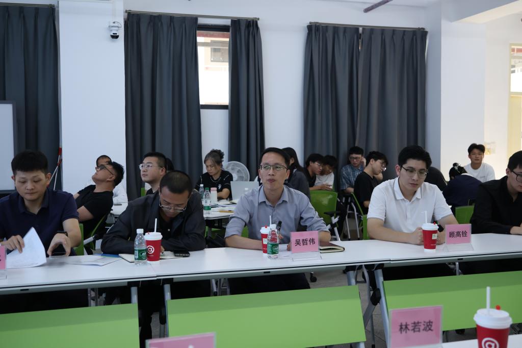 学校教务处处长林若波以《联合体建设规划》为题进行汇报,阐述了联合体的建设目标与实施路径。6位来自高校、园区领导及企业家代表,分别围绕党建引领、绿色石化产业人才培养、专业建设与发展路径等主题作专题报告。广东工业大学章泽杰博士深入剖析了《揭阳绿色石化产业的定位与思考》,为产业发展提供了理论支持;化工系主任江英志以《化工专业“五金”建设的情况与实践反思》为题,分享了专业建设的经验与成果;大南海石化工业区产业投资促进局副局长顾高铨则阐述了《揭阳大南海石化工业区规划蓝图与发展愿景》,展示了园区的未来发展方向;广东伊斯科新材料科技发展有限公司王硕经理以《从企业需求角度看学生核心能力的培养》做了汇报;广东东粤环保科技有限公司王云生经理分享了《企业人才招聘中存在的问题及对策》;化工系党总支书记钱德明以《党建引领,携手共建大南海绿色石化产教联合体》为主题,传达学习了党的二十届四中全会精神,强调了党建在产教融合中的重要作用。