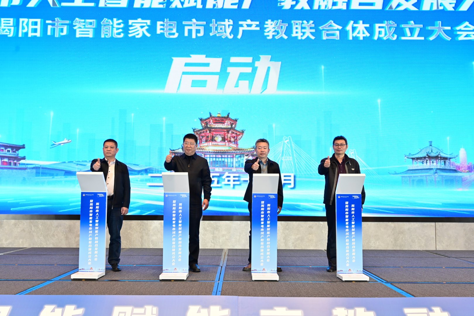 随后,大会启动仪式顺利举行。我校党委书记许茂伟、揭阳市教育局党组成员、副局长林晓畅、揭阳市工业和信息化局党组成员、副局长黄涌基、北京师范大学出版社职业教育分社副社长周光明等领导与嘉宾共同触屏,正式启动揭阳市人工智能赋能产教融合发展大会。现场同步开展新质智能赋能产业技术开发(服务)项目签约活动,签约项目涵盖制鞋、五金、大健康、海洋生物及乡村振兴等多个领域,将有效促进人工智能等新质生产力技术在区域特色产业的转化应用,助力产业高质量发展。