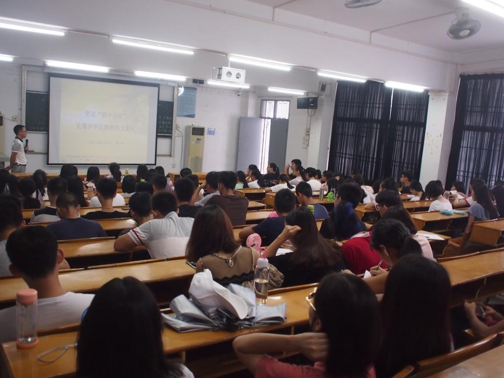 9月21日下午,化学工程系党总书记赖少坤在BT31教室为2015级和2014级同学开讲新学期“第一堂思政课”,系里多名教师随堂听课。赖书记授课的主题为《坚定“四个自信”,实现中华民族的伟大复兴》。