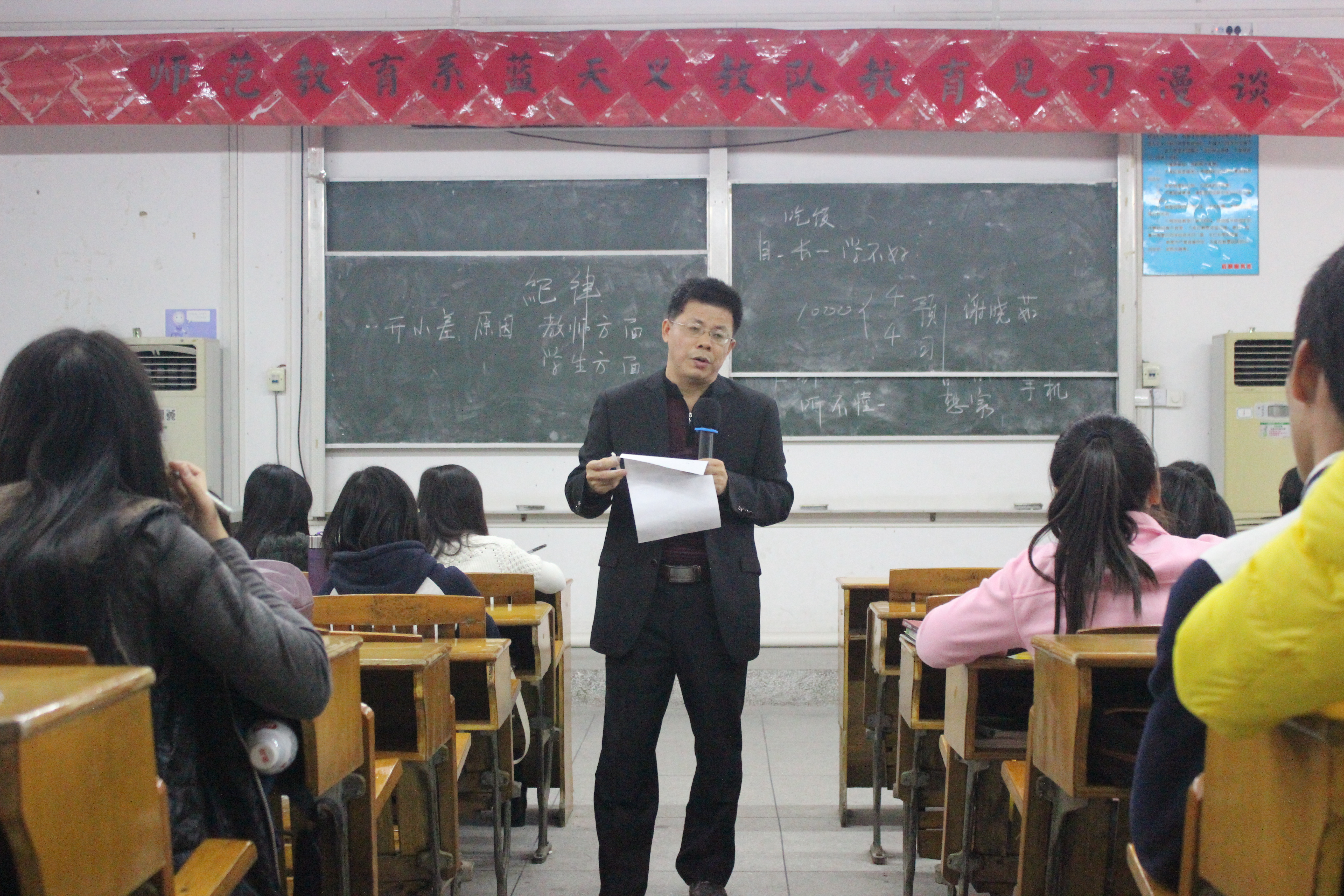 12月15日中午,师范系蓝天义教队在教学楼CT31举行一场关于解答义教队员难题的讲座,由揭阳职业技术学院师范教育系负责人李汉潮副教授主持开讲。