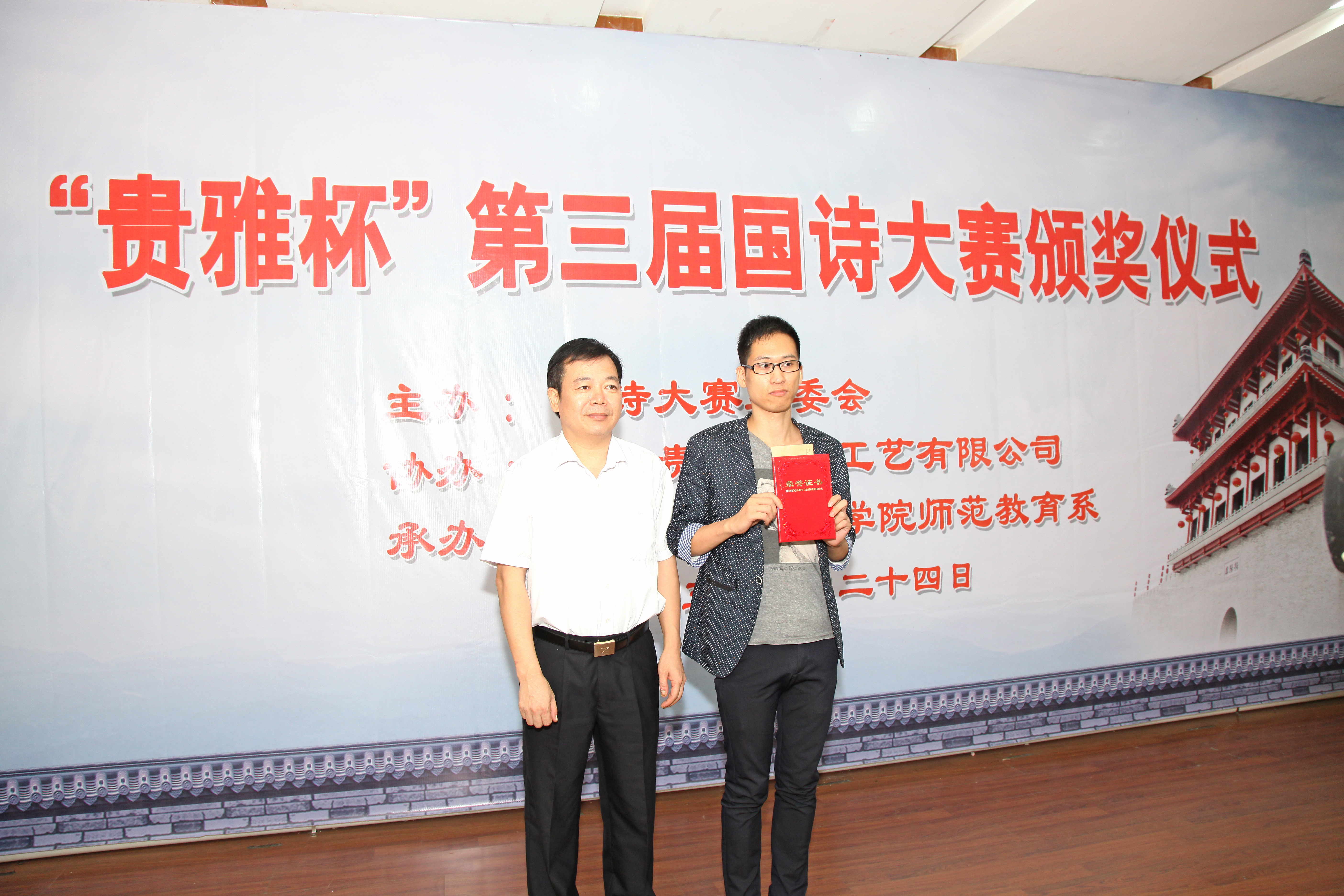 诗国传雅韵,国诗继华章。由诗教网国诗论坛、持社、《诗词学》编委会联合主办,广东贵雅天下工艺有限公司资助协办,学院师范教育系承办的“贵雅杯”第三届国诗大赛颁奖大会暨《国诗》第二辑首发式于10月24日在学院隆重举行,本次大赛评委、获奖者等近50多人参加了本次活动。