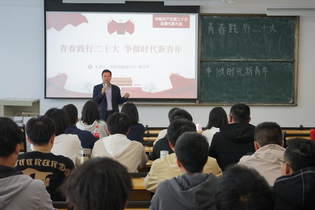 为深入学习贯彻党的二十大精神,进一步激发广大青年学子的奋斗激情,鼓励同学们以积极的态度投入到新学期的学习当中,3月7日下午,工商企业管理201班在教研楼603室召开“青春践行二十大 争做时代新青年”主题班会。校党委副书记姚玉平、经管系党总支书记黄淯斌参加班会。