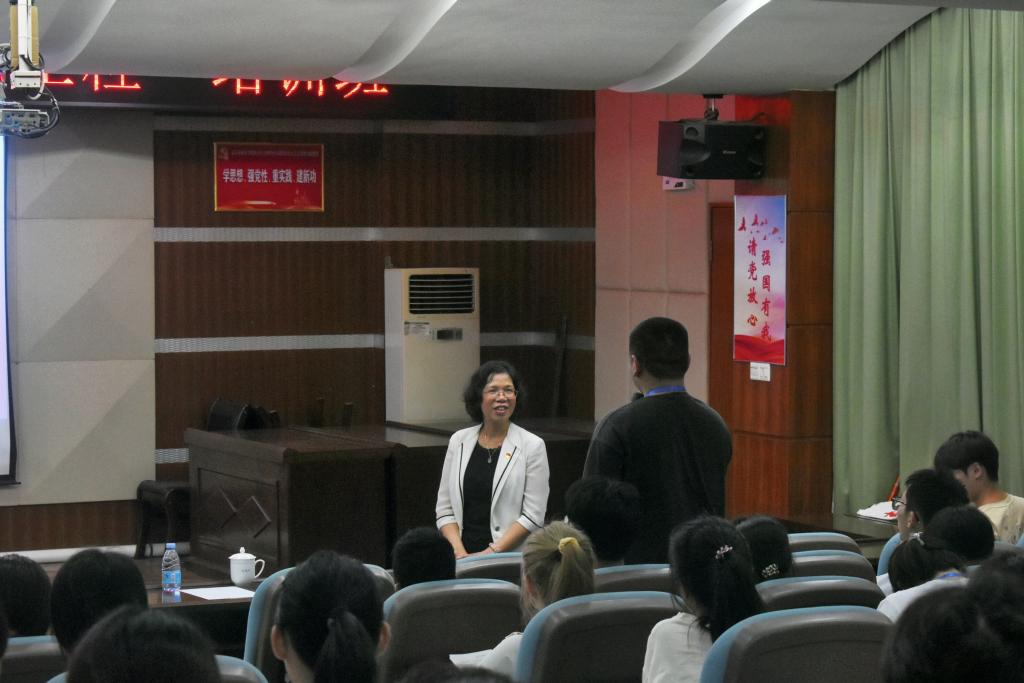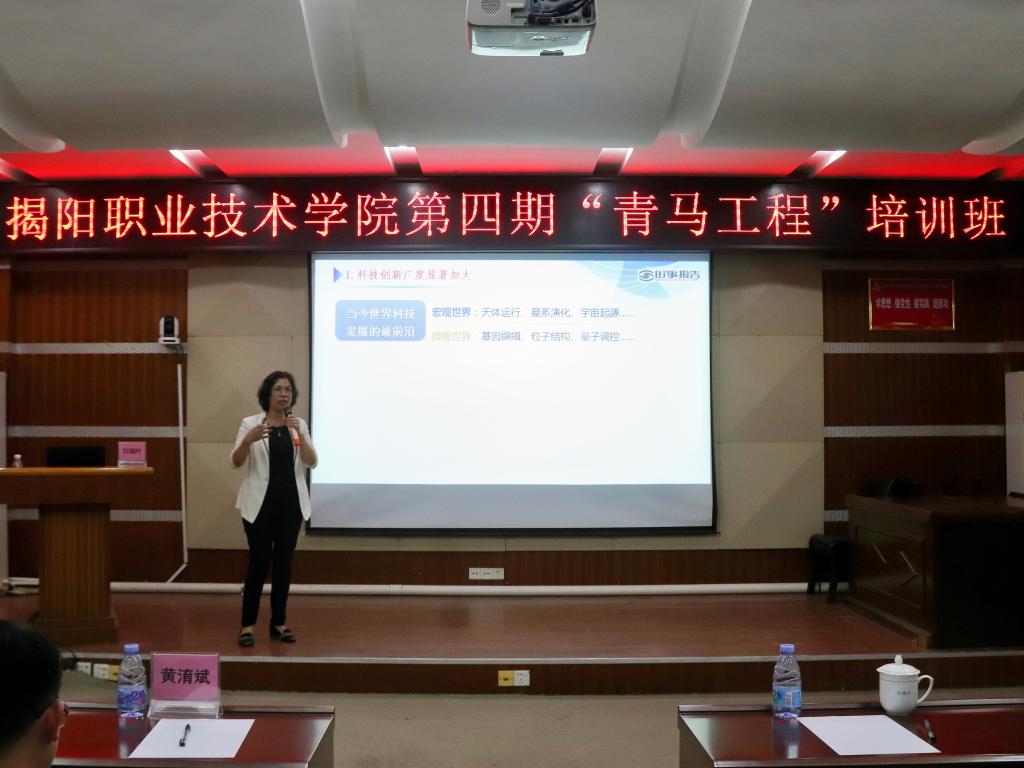 为深入学习宣传贯彻党的二十大精神,贯彻落实习近平总书记关于青年工作的重要思想,进一步加强对青年大学生的思想政治引领。4月18日下午,学校党委委员、副院长刘瑞叶在教学楼AT21讲授一堂《走好新时代科技自立自强之路》的思想政治理论课。第四期青马工程培训班全体学员、青年教师代表约120人参加。讲座由校团委书记黄淯斌主持。
