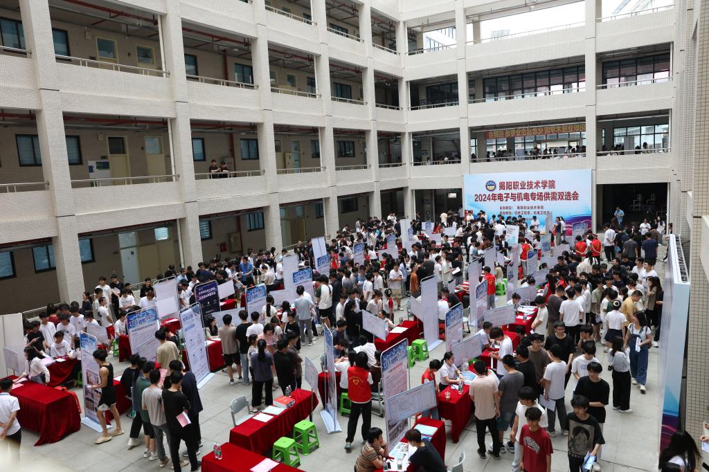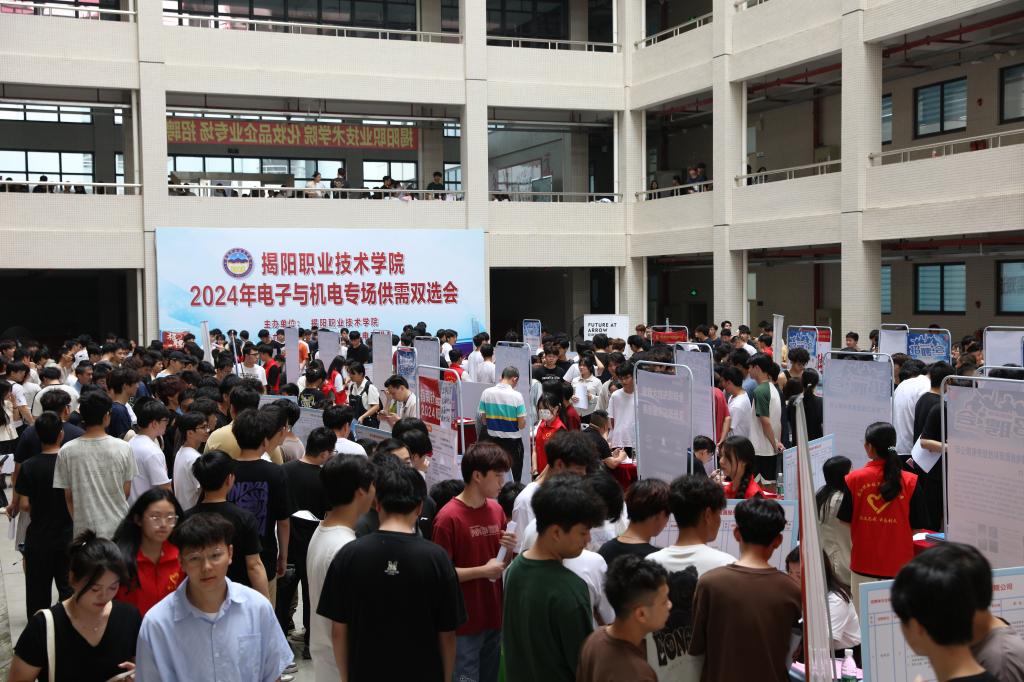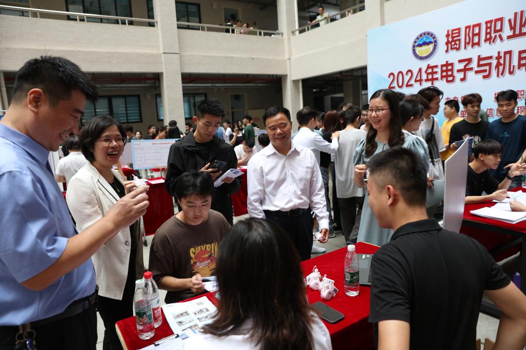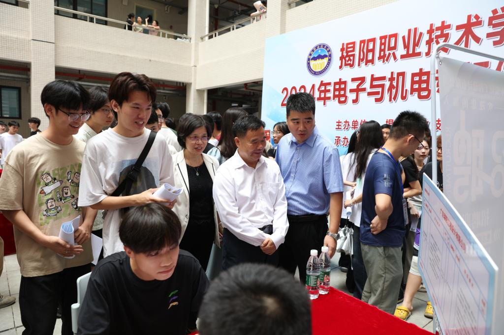 为促进毕业生更高质量更充分就业,推进“2+0.5+0.5”产教融合改革工作,我校在5月30日下午举办“揭阳职业技术学院2024年电子与机电专场供需双选会”。