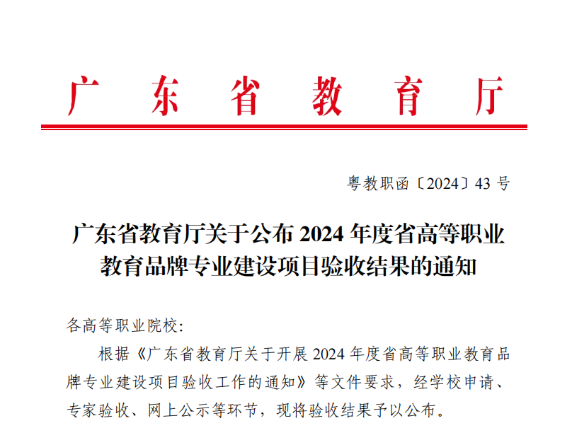 2024年11月11日,广东省教育厅公布了《广东省教育厅关于公布 2024年度省高等职业教育品牌专业建设项目验收结果的通知》,我校电子商务、药学专业顺利通过验收。