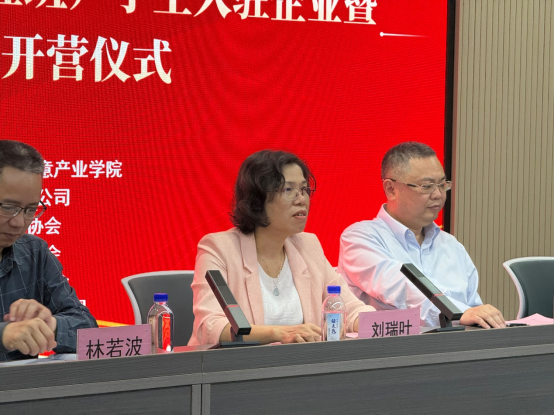 刘瑞叶为现代学徒制班企业导师颁发聘书并讲话。她充分肯定产业学院成立以来所取得的成绩,肯定了产业学院主动服务揭阳市“一化一海五优特”产业集群,特别是服务“物流电商”与支柱产业销售“最后一公里”需求的主动作为。刘瑞叶指出,数字创意产业学院经过两年多的建设,已成为学校产教融合的“先行区”,构建了“共建共享”的机制,走实了“双元育人”的路子,扎稳了“服务地方”的根基。她强调,此次学生入驻企业对现代学徒制班学生培养具有“里程碑”意义,标志着同学们从“学生”到“学徒”和“准员工”的关键转变,她勉励同学们要树立技能报国、立德修身的信念,珍惜一线学习机会,锤炼过硬本领,提升综合职业能力。