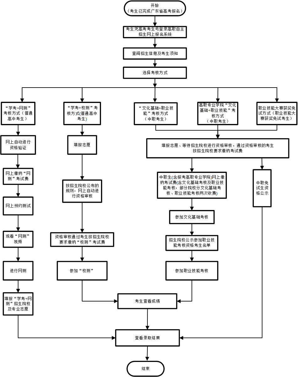 (一)4月28日至5月1日,考生凭高考报名号及密码登录“广东省2021年高职院校自主招生网上报名系统”(下称网上报名系统,网址:https://pg.eeagd.com.cn/gzks)报名,签订《诚信考试承诺书》,在“文化基础+职业技能”(面向中职考生)、“高职专业学院试点班”(面向中职考生)及“职业技能大赛获奖免试生”(面向中职考生)3种考核方式中选择一种填报志愿、录入相关报名信息、上传有关证明材料。