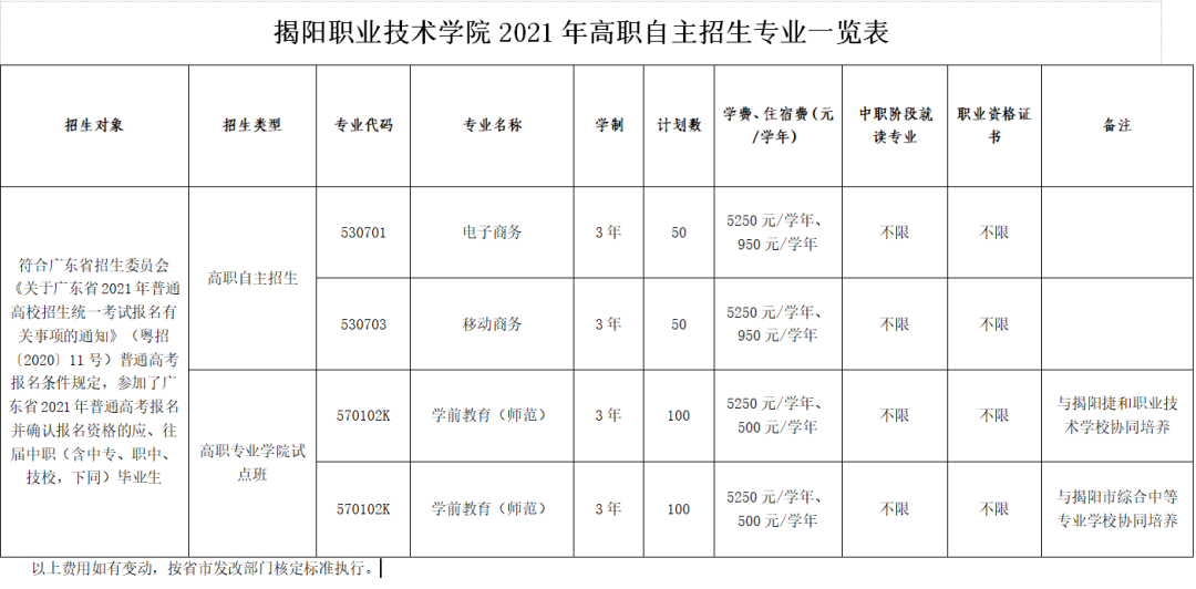 1.本校在揭阳捷和职业技术学校和揭阳市综合中等专业学校设置高职专业学院,开展高职专业学院试点班招生工作。