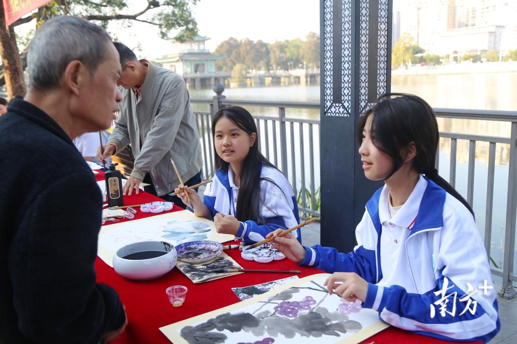当天上午,广东省学生体育艺术联合会与揭阳职业技术学院联合在学院教学楼举办专家讲座,邀请广东技术师范大学三级教授、博士研究生导师靳继君讲授《书法美育如何回应时代需求?兼谈“笔墨中国”大赛方案解读》,暨南大学艺术学院美术系主任、副教授、硕士生导师杨庆讲授《印从碑出:岭南印人邓尔雅篆刻艺术风格与创变》。