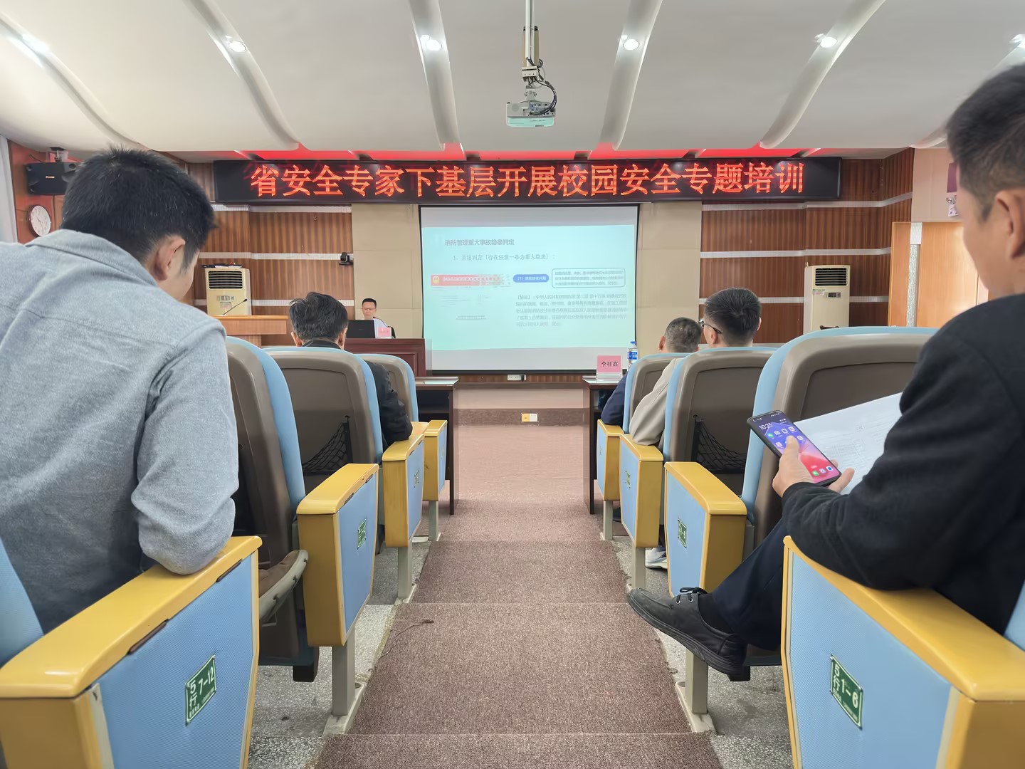 为夯实校园防控重大事故工作基础,提升安全管理水平,我校邀请广东外语外贸大学保卫部林安杰副部长于12月1日上午在教学楼AT21开展校园安全专题培训。出席本次活动的人员包括:校党委委员、副院长李桂鑫,安全相关行政部门主要负责人,各系、部(院)党总支书记,全体辅导员,各部门安全员以及相关外包单位骨干人员。