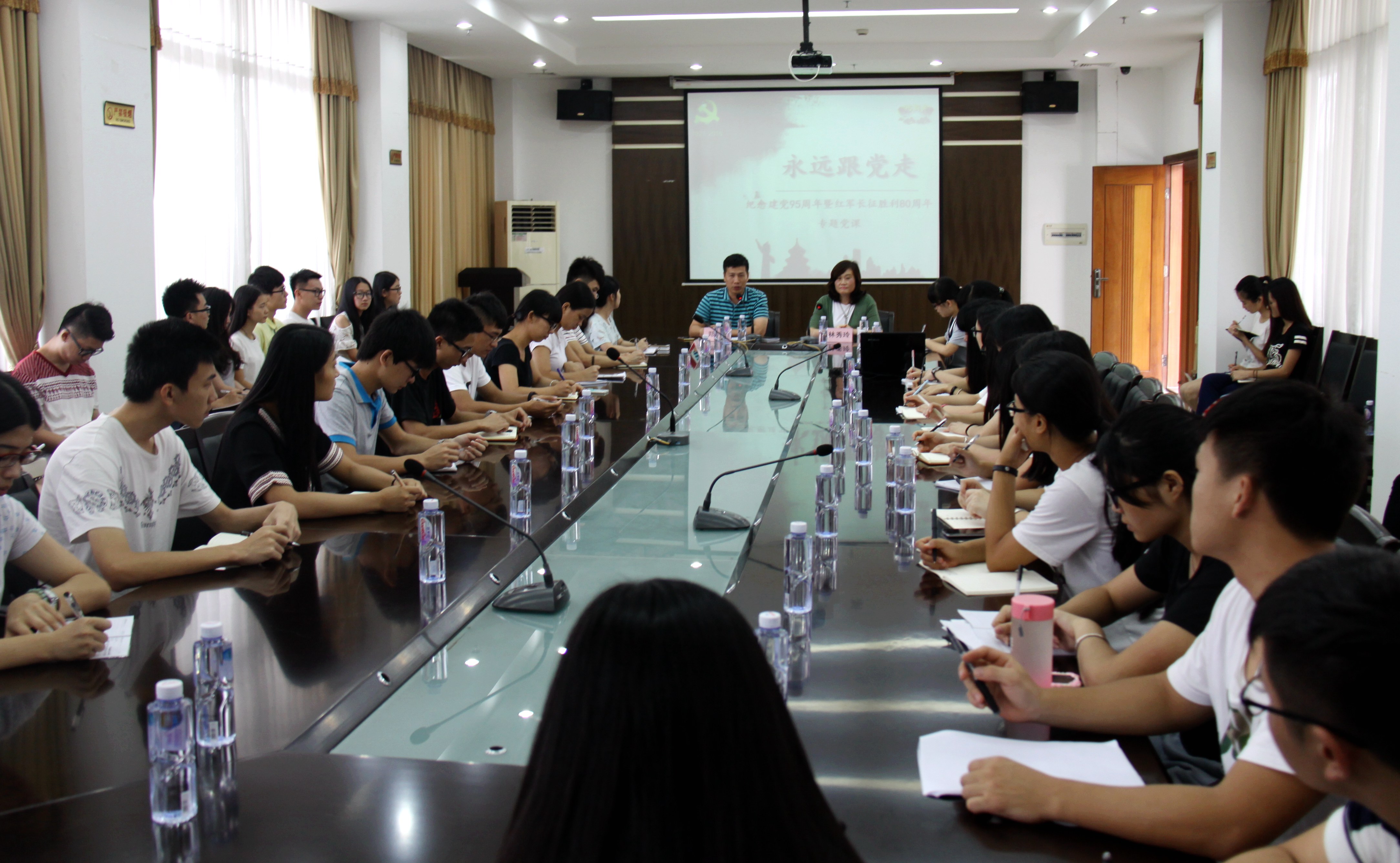 6月30日下午,在党的95周岁生日到来之际,结合“两学一做”学习教育,我校在行政楼507会议室举行纪念建党95周年暨红军长征胜利80周年专题党课。学校宣传统战部长林秀玲副教授为学生党团员代表讲授了《坚定信念,永远跟党走》专题党课。活动由团委书记郑骋主持。 授课中,林部长用生动的语言和丰富精彩的视频资料和大家一起重温党九十五周年的光辉历程。她指出,在党九十五周年风雨兼程的壮丽诗篇中,我们青年人要铭记没有共产党就没有新中国,今天的幸福生活是无数先烈用青春、热血和生命铸就的。我们要好好珍惜、继往开来、勇于担当。同时,我们更要读懂中国共产党人之所以能够从小到大、由弱到强,是因为有马克思主义为指导,中国共产党人坚定共产主义和社会主义的理想信念。带领中国人民坚持走中国特色社会主义道路。青年是祖国的未来,林部长寄望广大青年大学生要坚定理想信念,永远跟党走。青年大学生要做改革发展的参与者,而不做旁观者,争当社会主义核心价值观的模范践行者,勇于担当历史使命。 用青春激情,创造无愧于时代的业绩。