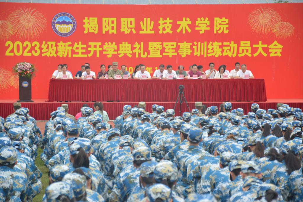 “你们梦想将从揭职院起航”,罗恢远同志在开学典礼上对2023级新生殷切的提出了三点希望:一是坚定信念,心怀报国之志,做一名坚定的爱国青年学生。以中华民族伟大复兴为己任,坚定理想信念、厚植爱国主义情怀,以实际行动践行“强国有我,请党放心”的青春誓言。二是发奋学习,练就过硬本领,做一名专业基础扎实,有一技之长的青年学生。努力践行“诚真、笃教、博学、致用”的校训精神,勤学苦练本领,刻苦钻研知识,迎接时代的挑战,为创造更加精彩的未来打下坚实基础。三是强健体魄,养成健全人格,做一名身体强健,心智健全的青年学生。要在军训中做到坚决服从命令、听从指挥,崇尚集体荣誉、注重团结协作,勇于突破自我、练就过硬本领,以饱满的热情和高昂的斗志出色地完成各项军训任务,勉励同学们报名参军,献身国防事业。