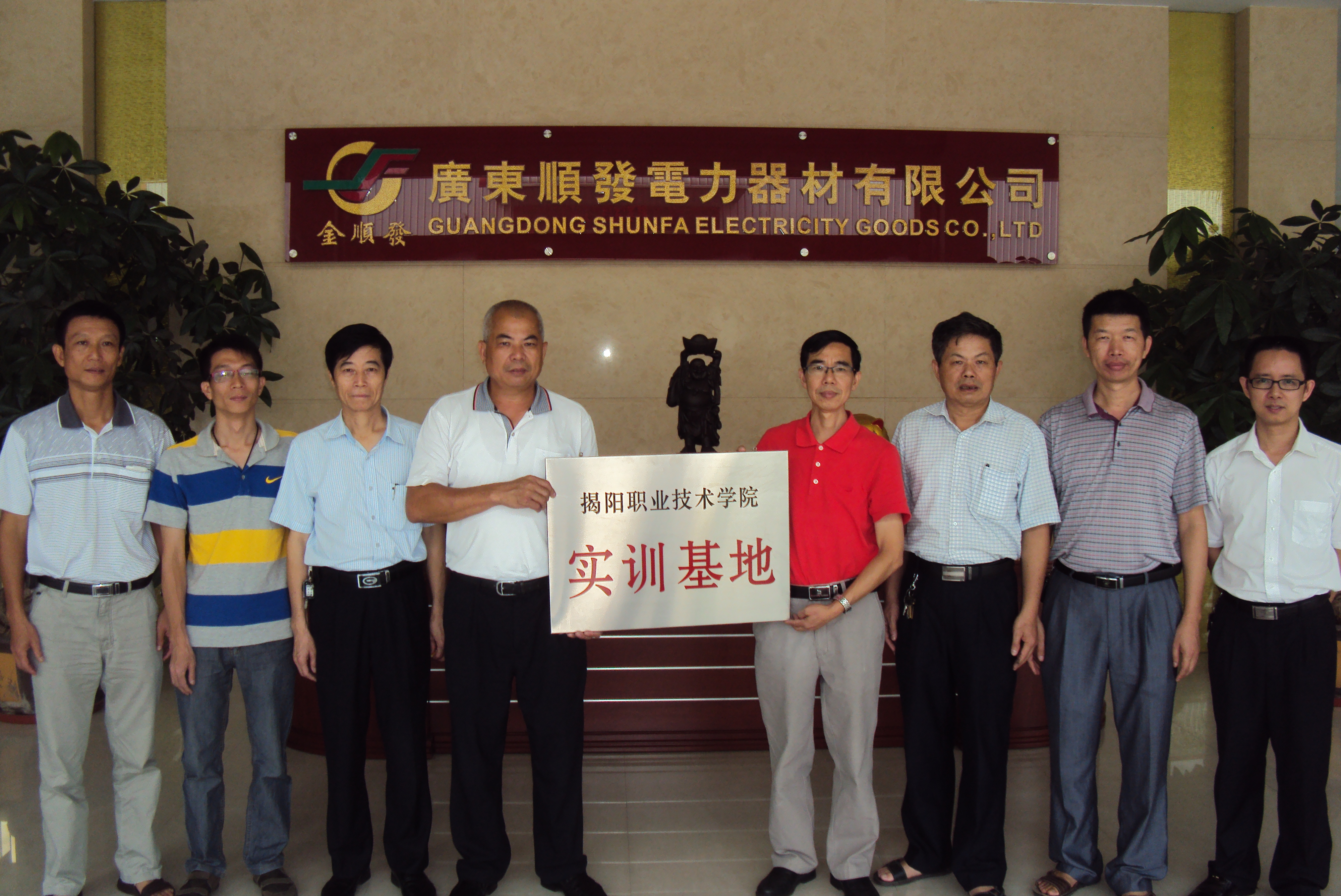 9月1日上午,我院在广东顺发电力器材有限公司举行校外实训基地暨产学研合作签字挂牌仪式。我院党委副书记、院长龚善初教授、陈少雄主任、机电工程系林若波书记、实训中心邢南亮副主任;广东顺发电力器材有限公司陈五弟总经理、蓝城区经贸局黄深源局长、唐南山主任等参加了本次仪式。