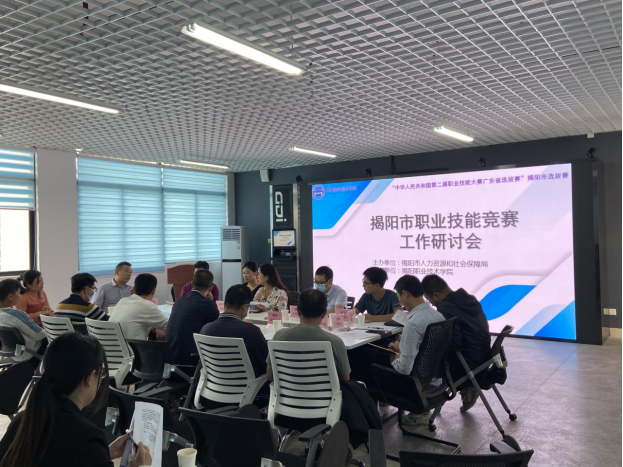为确保2022年揭阳市职业技能竞赛顺利进行,揭阳市职业技能竞赛工作研讨会于10月19日下午在我校举行,揭阳市职业技能服务指导中心、揭阳职业技术学院、潮汕职业技术学院、揭阳技师学院、揭阳市卫生学校、揭阳市综合中等专业学校、揭阳捷和职业技术学校、普宁职业技术学校、揭阳市国贸技工学校、普宁市中博职业技术学校、普宁市黄埔职业技术学校、普宁市兴美职业技术学校等单位相关人员参加会议,会议由揭阳市职业技能服务指导中心贺孝阳主任主持。