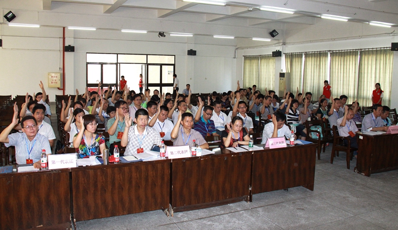 上午9时,会议在嘹亮的国歌声中拉开序幕。揭阳市总工会组织部部长杨丽容,学院党委书记李文升,院长龚善初,副书记、纪委书记詹汉池,副院长姚玉平、李桂鑫, 及来自全院各部门的94名正式代表、8名列席代表出席了大会。